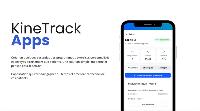 Nous développons KineTrack, une application qui connecte le kinésithérapeute et son patient en créant une continuité de soin entre le cabinet et le domicile.